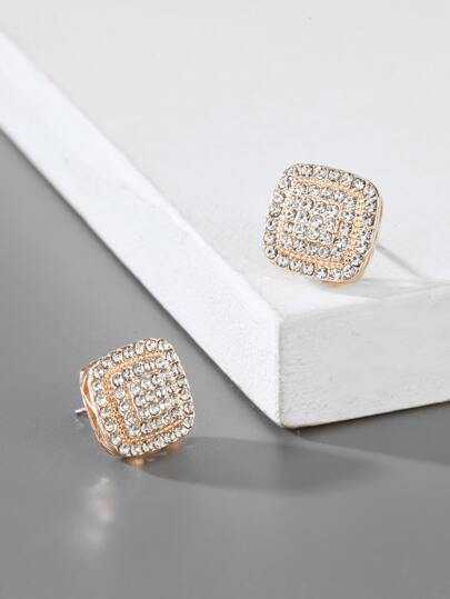 Hombres Pendientes con diamante de imitación cuadrado - Oro rosa - Añade 2