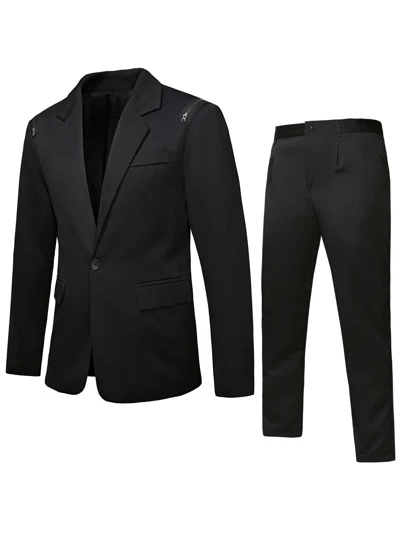 Manfinity Hombres Pantalones con blazer con botón - Negro - Añade 2