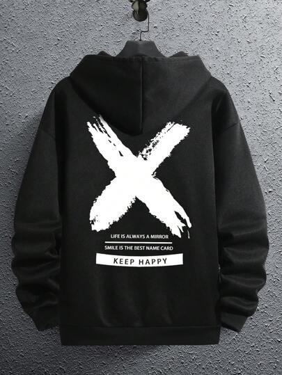 Hemo, sudadera casual holgada de manga larga con estampado de eslogan y hombros caídos para hombres - Negro - Añade 1