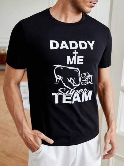 GENTILAND Hombres Camiseta con estampado de slogan - Negro - Añade 2