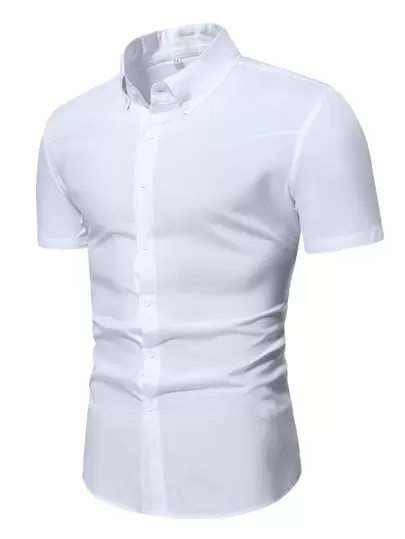 Manfinity Homme Hombres Camisa unicolor de cuello con botón - Blanco - Añade 2
