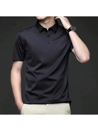 playera polo manga corta, lisa con botones tela: licra - Negro - Añade 1