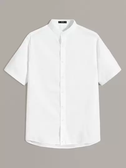 Manfinity Camisa sólida de hombres de manga corta - Blanco - Añade 1