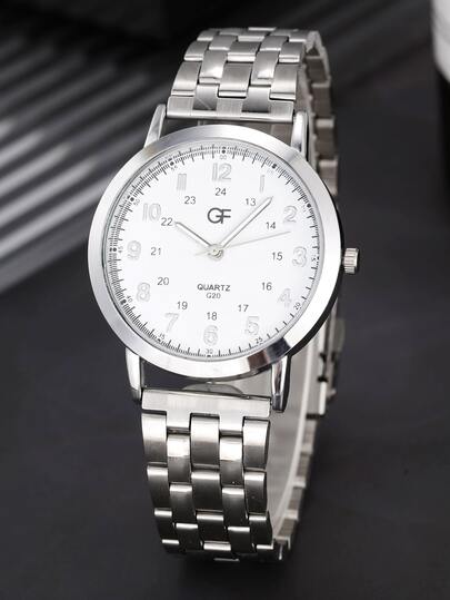 Hombres Reloj cuarzo de acero inoxidable - Plateado - Añade 3