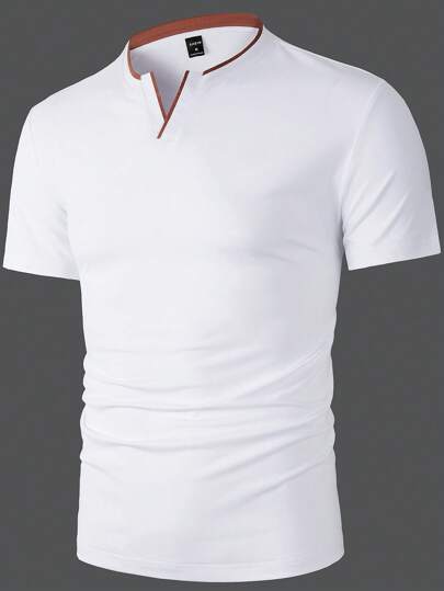 Manfinity Homme Hombres Camiseta ribete en contraste de cuello notch - Blanco - Añade 2
