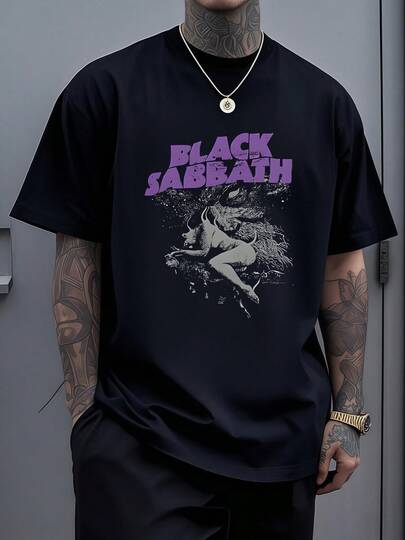 Camiseta Estampada Manga Corta Para Hombre 1 unidad de 220 gramos Camisa de T 100% algodón con estampado digital Black  Banda de Rock Camisa de Hombre Casual - Negro - Añade 1