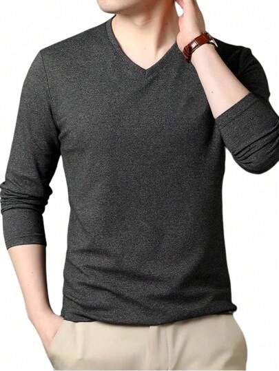 Playera Manga Larga Para Hombre Cuello V Cómoda Stretch - Gris Oscuro - Añade 1