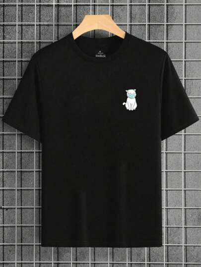 Playeras casuales de hombre Camiseta Casual De Manga Corta Con Estampado De Caricatura En Talla Grande Para Hombre para hombre regalos para papá - Negro - Añade 1