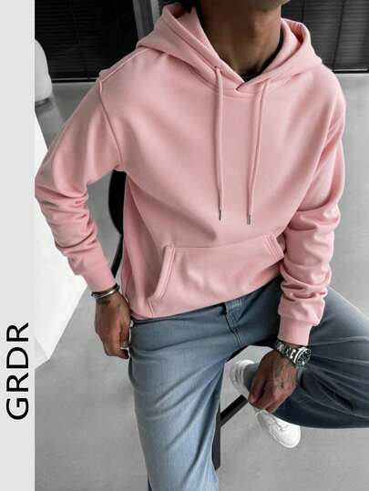Sudadera con capucha de unicolor de manga larga con cordón y bolsillo para hombres GRDR - Rosa - Añade 1