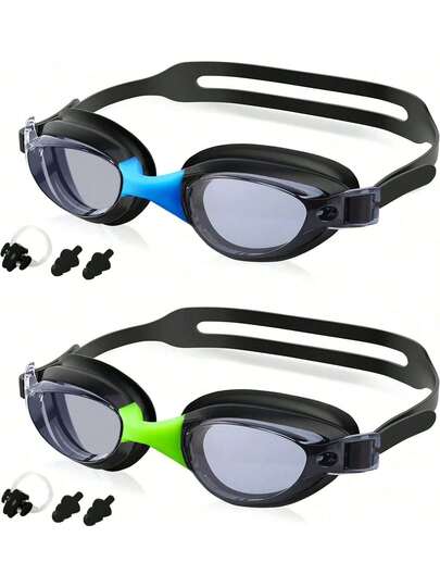 Gafas de Natación, Goggles Adulto Natacion, Juego de 2 Gafas de Natación Con Tapón Nasal y Clip Nasal, Antirreflejos, Antivaho, Protección, Sin Fugas, Adecuadas para Hombres y Mujeres Adultos - 1 - Añade 3