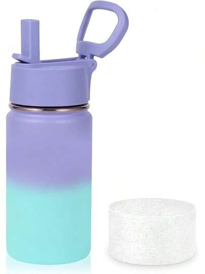 Volhoply - Termo de acero inoxidable aislado a prueba de fugas de 400 ml con tapa de popote y funda de silicona, sin BPA, fácil de usar para niños y niñas (violeta azul, 1). - Púrpura Azul - Añade 1