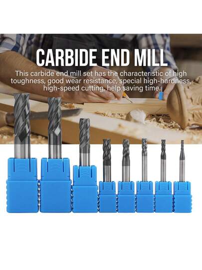 8 Piezas Carbide End Mill, 2-12Mm 4 Flautas Juego de Molino de Extremo de Carburo Juego De Herramientas De Corte De Fresado De Acero De Tungsteno para Madera Aluminio Acero Titanio - Multicolor - Añade 10