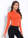 Chaqueta deportiva minimalista de mujer con cuello alto, cremallera, manga larga y ojal para el pulgar