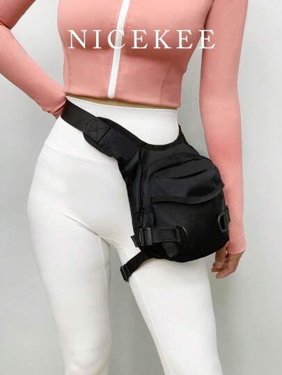 La nueva bolsa clásica de casual para la cintura y la pierna tiene un diseño exclusivo, es simple, elegante y versátil en unicolor, y es ligera y ajustable con correas para el hombro. Es adecuada para viajes al aire libre, montañismo, camping y ciclismo. - Negro - Añade 4