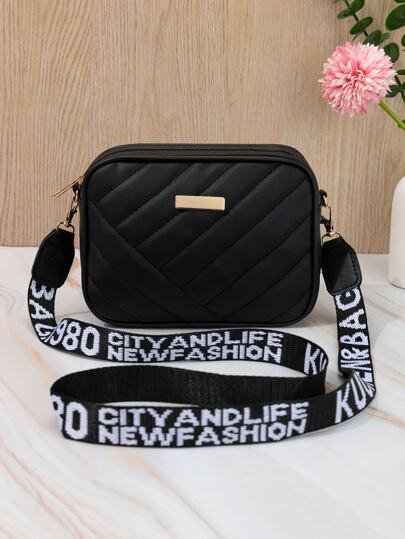 Bolsa cuadrada mini guateado con diseño metálico - Negro - Añade 1