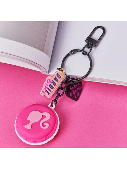 Llavero de la serie Macaron de Barbie de Miniso - Decoración linda y de dibujos animados para bolsos, carteras, mochilas escolares, mochilas, llaves de coche (Negro) - Negro - Añade 3