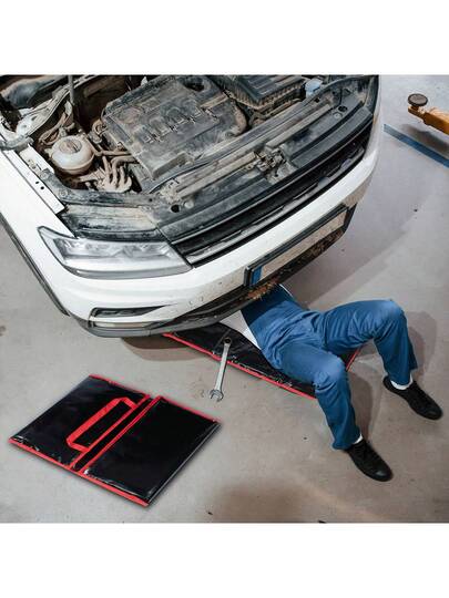1 pieza Cama de mecánico plegable de lona impermeable 100x60 cm, colchón de trabajo portátil para reparaciones automotrices, resistente y fácil de limpiar, ideal para mecánicos, uso en talleres, garajes, reparaciones debajo del coche, cama de suelo cómoda y ligera con diseño compacto para fácil transporte y almacenamiento, accesorio profesional para mantenimiento - Negro - Añade 2