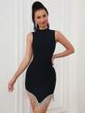 Modphy Vestido ajustado de malla con cuello alto con cristales y brillantes, vestido de dama de honor de lujo, vestido de invitada de boda para eventos y fiestas de noche