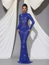 Modphy Nuevo vestido ajustado tipo sirena con mangas largas y diseño muy adornado con strass, sin espalda. Vestido de boda, dama de honor, fiesta de noche, gala y para invitados de boda, sexy