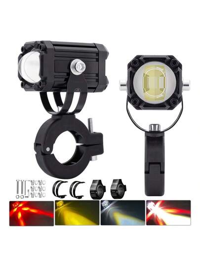 2pzs Faros De Lupa Estrobo Para Moto Led Auxiliares 4 Modos - Negro - Añade 4