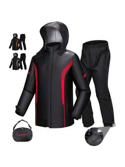 Impermeable Motociclista Refleante con Capucaa Calidad Cubasquero  Reflectante para Muer y ore Conunto de Impermeab para Moto con Cuezapatos - Rojo - Añade 3