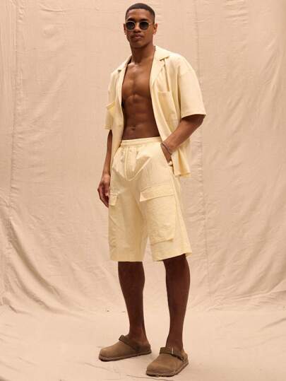 Musero Pantalones cortos cargo con detalles de bolsillos utilitarios elásticos para primavera y verano - Beis - Añade 1