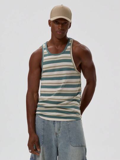 Musero Camiseta de tirantes con paneles de contraste y rayas, chaleco sin mangas oversize, esencial de primavera y verano - Multicolor - Añade 4