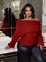 NU&NOW Suéter de punto de cable con hombros descubiertos de unicolor para mujer de talla grande