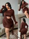Vestido ajustado de manga larga con volantes y mangas de farol en color rojo para mujeres de talla grande de NU&NOW, adecuado para citas, fiestas, otoño/invierno