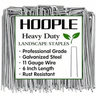 HOOPLE - Paquete de 100 grapas galvanizadas de calibre 11 de 6 pulgadas estacas para decoración al aire última intervensión grapas antioxidantes para tela de barrera de malezas estacas de tienda en - Plateadosliver - Añade 5