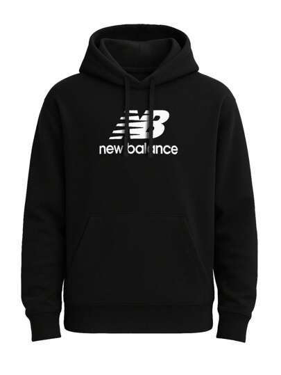New Balance Sudadera con capucha de felpa francesa con logo apilado - NEGRO (001) - Negro - Añade 1
