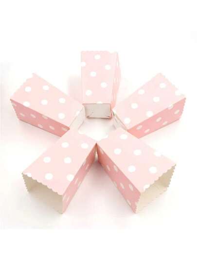 Nueva caja de palomitas a rayas, ondulada y con lunares para festivales, cumpleaños y fiestas, regreso a la escuela, Día de San Valentín - Rosa y blanco - Añade 5