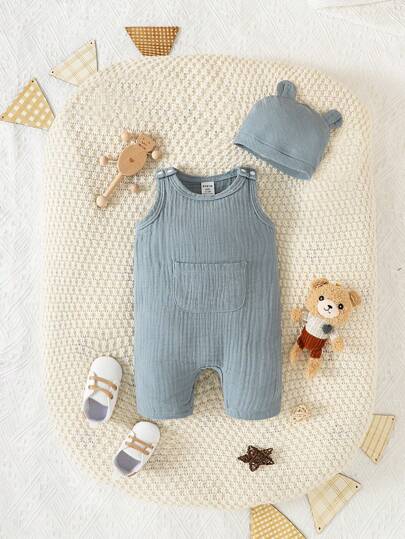 Recién nacido Bebé Mono con bolsillo de canguro & Sombrero de accesorio - Neblina azul - Añade 4
