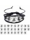1 pieza Pulsera de pareja trenzada con forma de corazón en color negro de acero inoxidable y tono plateado, con opción de 26 letras en inglés para el Día de San Valentín