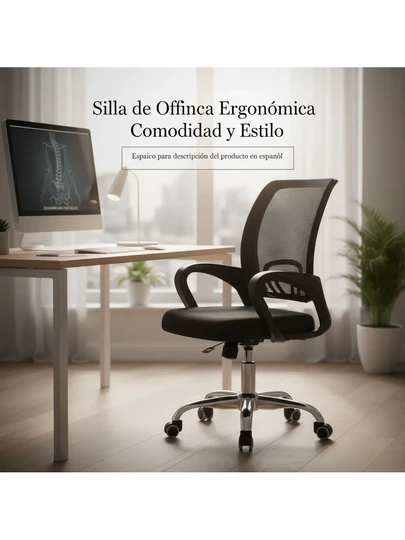 Silla de Oficina Moderna con Respaldo de Malla | Altura Ajustable | Giratoria 360° | Inclinación Ajustable | Para Hogar y Oficina - Negro - Añade 5
