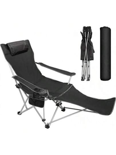 2 en 1 Silla Reclinable Plegables&Silla de Descanso Diario,Sillas Portatil Camping con Reposabrazos,Reposacabezas,Portavasos y Bolsa de Almacenamiento,Sillas de Playa para Picnic Barbacoa Exterior - Negro - Añade 7