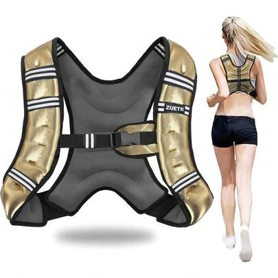 Chaleco con peso 6 libras 8 libras 16 libras 16 libras con rayas reflectantes chaleco con peso para hombres y mujeres equipo de entrenamiento para entrenamiento de fuerza correr trotar - Oro - Añade 5