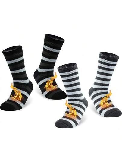 Calcetines Térmicos Cálidos KitNSox para Hombres y Mujeres, Calcetines de Invierno Gruesos y Aislados para Botas en Climas Fríos - 2 pares de rayas gris oscuro y rayas gris claro - Añade 7