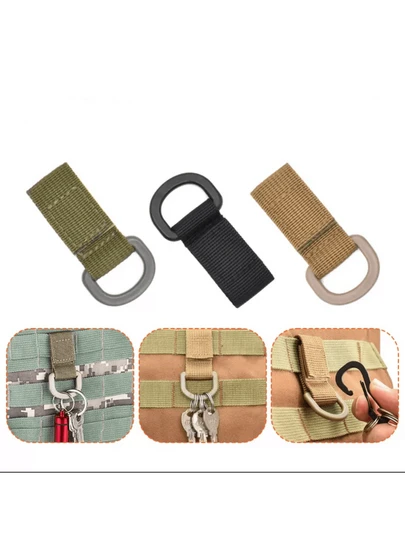 Accesorio de gancho de llavero de cintura de mochila táctica de nylon con anillo D para senderismo, caza, camping al aire libre - Negro - Añade 3