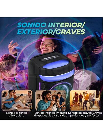 Altavoz Bluetooth, sonido estéreo potente, graves profundos, inalámbrico, portátil, grande, para fiestas, con subwoofer, emparejamiento TWS, luces LED dinámicas, adecuado para actividades al aire libre, camping y patio. - Negro - Añade 6