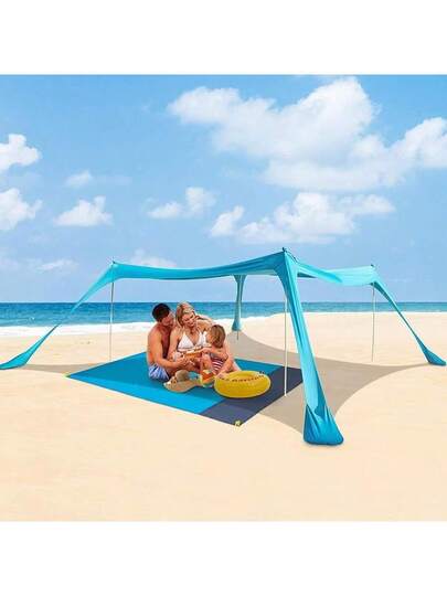 YQQ CCYLEZ Tienda De Playa para 8 Personas Toldo para Sombra De Playa Portátil Tienda De Playa Emergente A Prueba De Viento Refugio Solar con 4 Sacos De Grandes Excepcionales Y 42179 - Azul - Añade 1