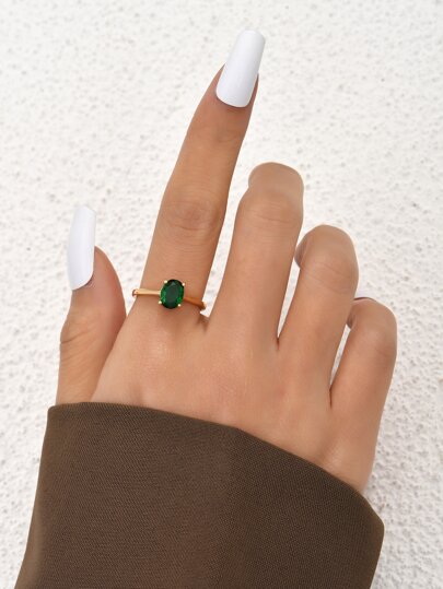 Nooxian Anillo con diseño de circón de oval - Amarillo Oro - Añade 1