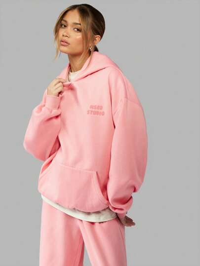 MISSGUIDED Sudadera con capucha y cordón ajustable oversize, sudadera clásica, ropa deportiva informal, ropa de calle con estilo hip hop, indispensable para gimnasia y entrenamiento, ideal para otoño e invierno - Rosa - Añade 3