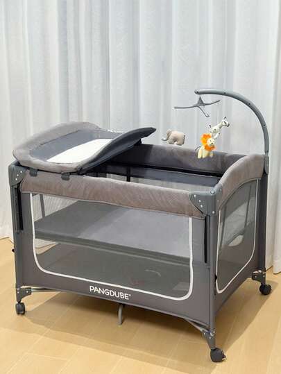 Cuna Multifuncional PANGDUBE para Cama de Padres - Cuna 3 en 1 Plegable con Cambiador y Área de Juego para Niñas y Niños - Convertible en Cuna de Co-sueño - Diseño Portátil con Ruedas Silenciosas para el Hogar y Viajes - Como imagen - Añade 7
