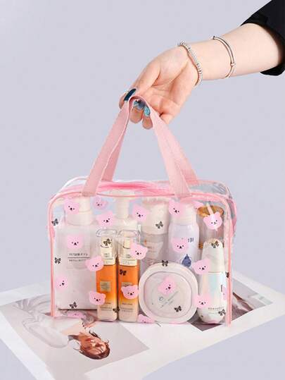 Bolsa de aseo de PVC con gran capacidad, bolsa de almacenamiento de cosméticos con asa, bolso de maquillaje portátil para viajes, regalo para chica - Modelo de oso - Añade 5
