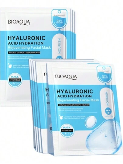 Paquete de 10 Mascarillas de Ácido Hialurónico En Sobre Tela Antiarrugas Hidratante - Blanco - Añade 5