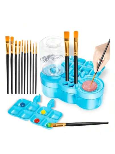Herramienta De Limpieza De Pinceles Con 10 Pinceles Y Paleta - Azul - Añade 1