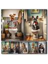 1 pieza Impresión en lienzo con pintura de animal divertido de un perro tipo león sentado en el inodoro leyendo un periódico, decoración de baño, cuadro con opción de marco moderno