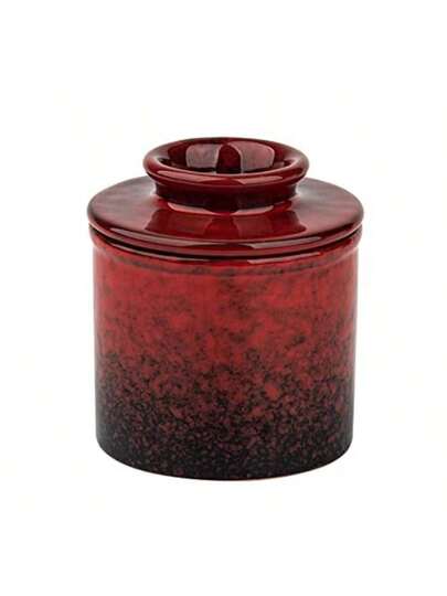 Pottery Butter Keeper Crock Mantequilla francesa roja para mostrador con agua y soporte de mantequilla de cerámica para dejar en la encimera - Rojo - Añade 1