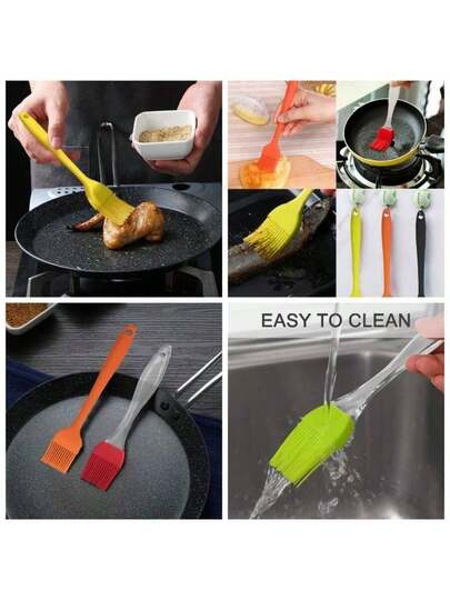 6 piezas de Pinceles de silicona para pasteles, Food Grade Oil Butter Basting Brush para BBQ Grill Cooking Baking - Naranja, Negro, Amarillo, Rojo, Azul, Verde - naranja, negro, amarillo, rojo, azul, verde - Añade 8